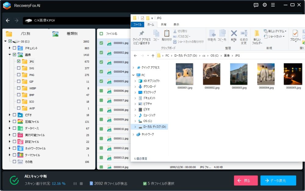 RecoveryFox AIは、失ったデータを探して復元するためのWindows専用ソフトだ。 最大の特徴は、AI技術を駆使してファイル形式の特徴を識別し、バラバラになったデータの断片から元のファイルを再構築してくれる点にある。