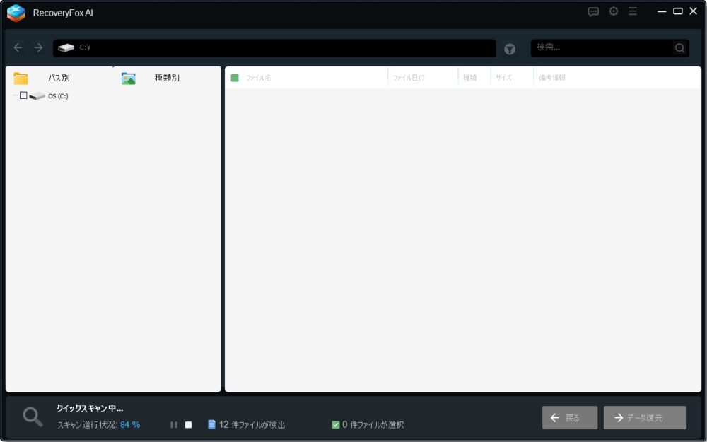 操作画面を開いて驚いたのは、その「シンプルさ」だ。 データ復元と聞くと、プログラマー仕様の黒い画面に白い文字が並ぶような難しいイメージがあるが、RecoveryFox AIは直感的に操作できる。プログラマー仕様の画面は私の目では認識不能だ。