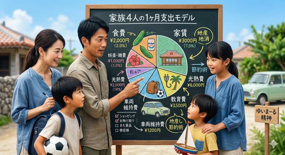 家族(夫婦+小学生2人)の支出モデル:地産地消と工夫の暮らし